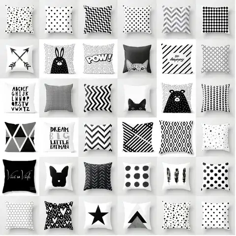 Livingroom 간단한 블랙 화이트 기하학 쿠션 케이스 뜨거운 현대 노르딕 장식 베개 케이스 소파 소파 던져 베개 자동차 홈